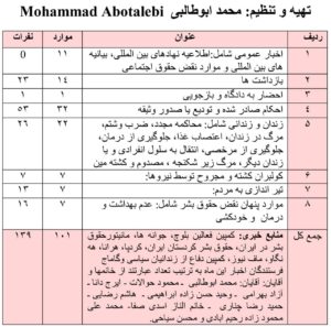 جدول آماری سلب حقوق اقوام و ملل ایرانی در اسفند ماه 1398