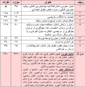 جدول آماری سلب حقوق اقوام و ملل ایرانی در زمستان 1398