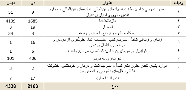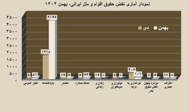 گزارش آماری نقض حقوق اقوام و ملل ایرانی، بهمن ۱۴۰۴