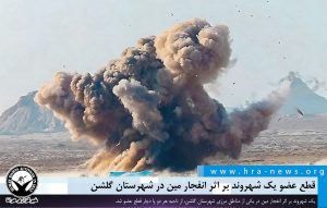 خبرگزاری هرانا – روز پنجشنبه ۶ شهریورماه، یک تبعه افغانستان، بر اثر انفجار یک مین ضد نفر در منطقه مرزی کلگان در شهرستان گلشن زخمی شد و پس از یک روز، در پی شدت جراحات وارده جان خود را از دست داد.