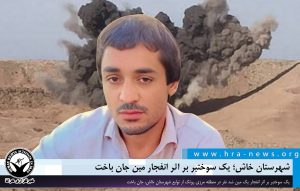 خبرگزاری هرانا – شامگاه یکشنبه ۱۲ مردادماه، یک سوختبر بر اثر انفجار یک مین ضد نفر در منطقه مرزی روتک از توابع شهرستان خاش، جان باخت.