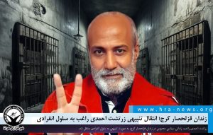 خبرگزاری هرانا – زرتشت احمدی راغب، زندانی سیاسی محبوس در زندان قزلحصار کرج، روز دوشنبه ۱۵ اردیبهشت ماه، به صورت تنبیهی به سلول انفرادی منتقل شد.