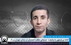 خبرگزاری هرانا – مطلب احمدیان، زندانی سیاسی محبوس در زندان تهران بزرگ، با وجود نیاز به رسیدگی پزشکی، از اعزام به بیمارستان محروم مانده است.