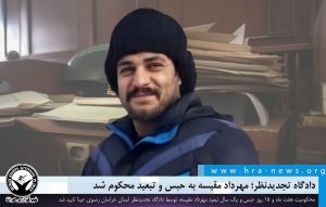 خبرگزاری هرانا – محکومیت هفت ماه و ۱۵ روز حبس و یک سال تبعید مهرداد مقیسه، توسط دادگاه تجدیدنظر استان خراسان رضوی عینا تایید شد.