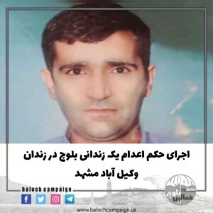 اجرای حکم اعدام یک زندانی بلوچ در زندان وکیل آباد مشهد