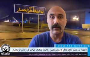 نگهداری حمید حاج جعفر کاشانی بدون رعایت تفکیک جرائم در زندان قزلحصار