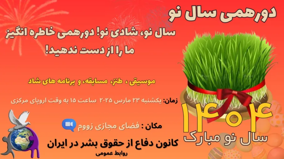 فراخوان دورهمی به مناسبت آغاز سال ۱۴۰۴ خورشیدی در تاریخ ۲۳ مارس ۲۰۲۵ در ساعت ۱۵:۰۰ به وقت اروپای مرکزی در فضای مجازی زووم
