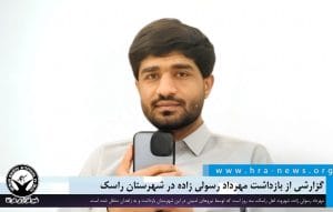 خبرگزاری هرانا – مهرداد رسولی زاده، شهروند اهل راسک، سه روز است که توسط نیروهای امنیتی در این شهرستان بازداشت و به زاهدان منتقل شده است.