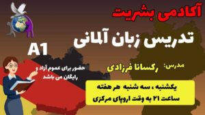 پوستر کلاس آموزش زبان آلمانی ، سطح ۱ ، در تاریخ ۲۰ آوریل ۲۰۲۵ در ساعت ۲۱:۰۰ به وقت اروپای مرکزی در فضای مجازی زووم