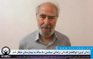 خبرگزاری هرانا – روز جاری، ابوالفضل قدیانی، زندانی سیاسی ۸۰ ساله محبوس در زندان اوین جهت انجام مراحل پزشکی به بیمارستان منتقل و بستری شد.