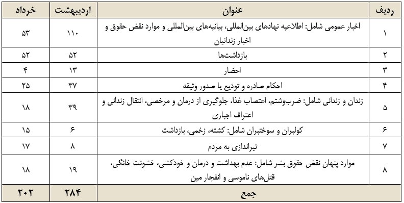 این گزارشات آماری از میان بیش از ۱۵۲ خبر که در طول ماه خرداد ۱۴۰۴ تهیه شده است.