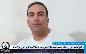 به گزارش خبرگزاری هرانا، ارگان خبری مجموعه فعالان حقوق بشر در ایران، سیامک نصیری به ندامتگاه مرکزی کرج بازگشت.