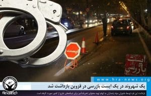 به گزارش خبرگزاری هرانا به نقل از خبرگزاری صدا و سیما، یک شهروند در جریان یک ایست بازرسی در قزوین، بازداشت شد.