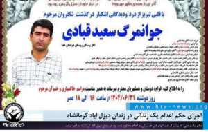 هویت این زندانی که سحرگاه روز یکشنبه ۳۰ شهریور ۱۴۰۴ به چوبه دار آویخته شد، سعید قبادی، اهل شهرستان سرپل ذهاب، گزارش شده است.