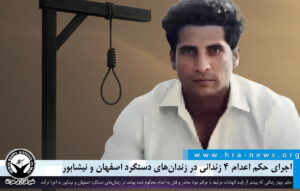 خبرگزاری هرانا – طی روزهای اخیر، حکم سه زندانی که پیشتر از بابت اتهامات مرتبط با جرائم مواد مخدر به اعدام محکوم شده بودند، در زندان دستگرد اصفهان به اجرا درآمد. همچنین سحرگاه روز چهارشنبه ۲۶ شهریورماه، یک زندانی که از بابت اتهام قتل به اعدام محکوم شده بود، در زندان نیشابور به چوبه دار آویخته شد.