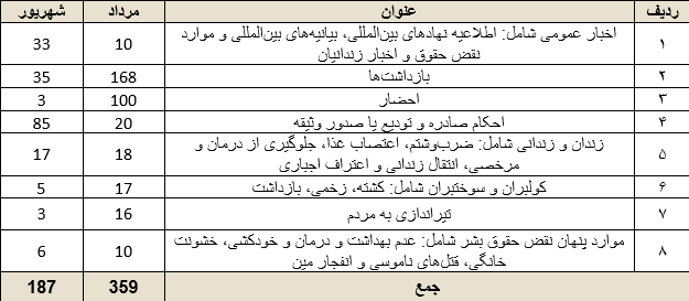 آمار فوق از گزارشات رسانههای داخلی و خارجی مورد تأیید دولت جمهوری اسلامی ایران جمعآوری شده و عملاً نمیتواند بیش از ۲۵ تا ۳۰ در صد واقعیتهای جامعه باشد.