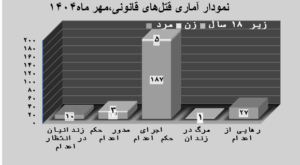 یادآوری: با توجه به سانسور خبری حاکم بر رسانههای ایران، آنچه در پی میآید گزارشی است کوتاه و فشرده از نقض حقوق جامعه ایران در محدوده اعدام شهروندان طی دوره زمان یک ماه گذشته که نمیتواند بازتاب دهنده کامل قتل دولتی باشد.