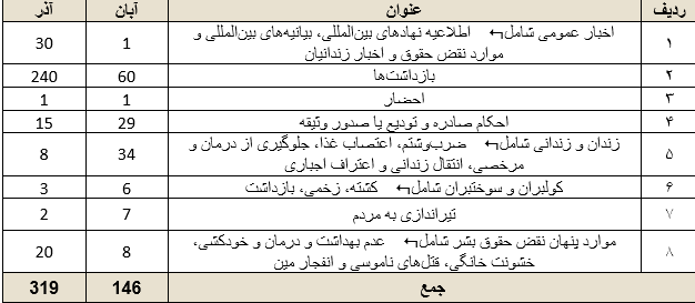 این گزارشات آماری از میان بیش از 122خبر که در طول ماه آذر۱۴۰۴ تهیه شده است.