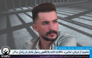 خبرگزاری هرانا – رسول یادیار، علیرغم گذشت ۱۲ روز از زمان بازداشت، کماکان در بلاتکلیفی بهسر میبرد. او اخیرا به قرنطینه زندان بوکان منتقل شده و علیرغم وضعیت جسمانی نامناسب، از حق دسترسی به خدمات پزشکی محروم است. این در حالی است که امکان برخورداری از تماس تلفنی و ملاقات با خانواده نیز از وی سلب شده است.