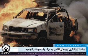 در این گزارش آمده است: شامگاه جمعه ۵ دی ۱۴۰۴، خودروی یک سوختبر حوالی میدان ترهبار شهرستان میناب، بدون هشدار قبلی هدف تیراندازی مستقیم نیروهای انتظامی قرار گرفت. این اقدام ماموران منجر به آتشسوزی خودرو و مرگ راننده در همان محل شد. بر اساس این گزارش، شدت آتشسوزی به گونهای بود که راننده فرصت خروج از خودرو را پیدا نکرده است.