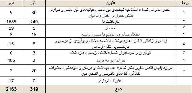 گزارش آماری نقض حقوق اقوام و ملل ایرانی، دی ۱۴۰۴