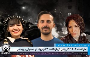 به گزارش خبرگزاری هرانا، ارگان خبری مجموعه فعالان حقوق بشر در ایران، در جریان اعتراضات سراسری ۱۴۰۴، سه شهروند در اصفهان و رودسر بازداشت شدند.