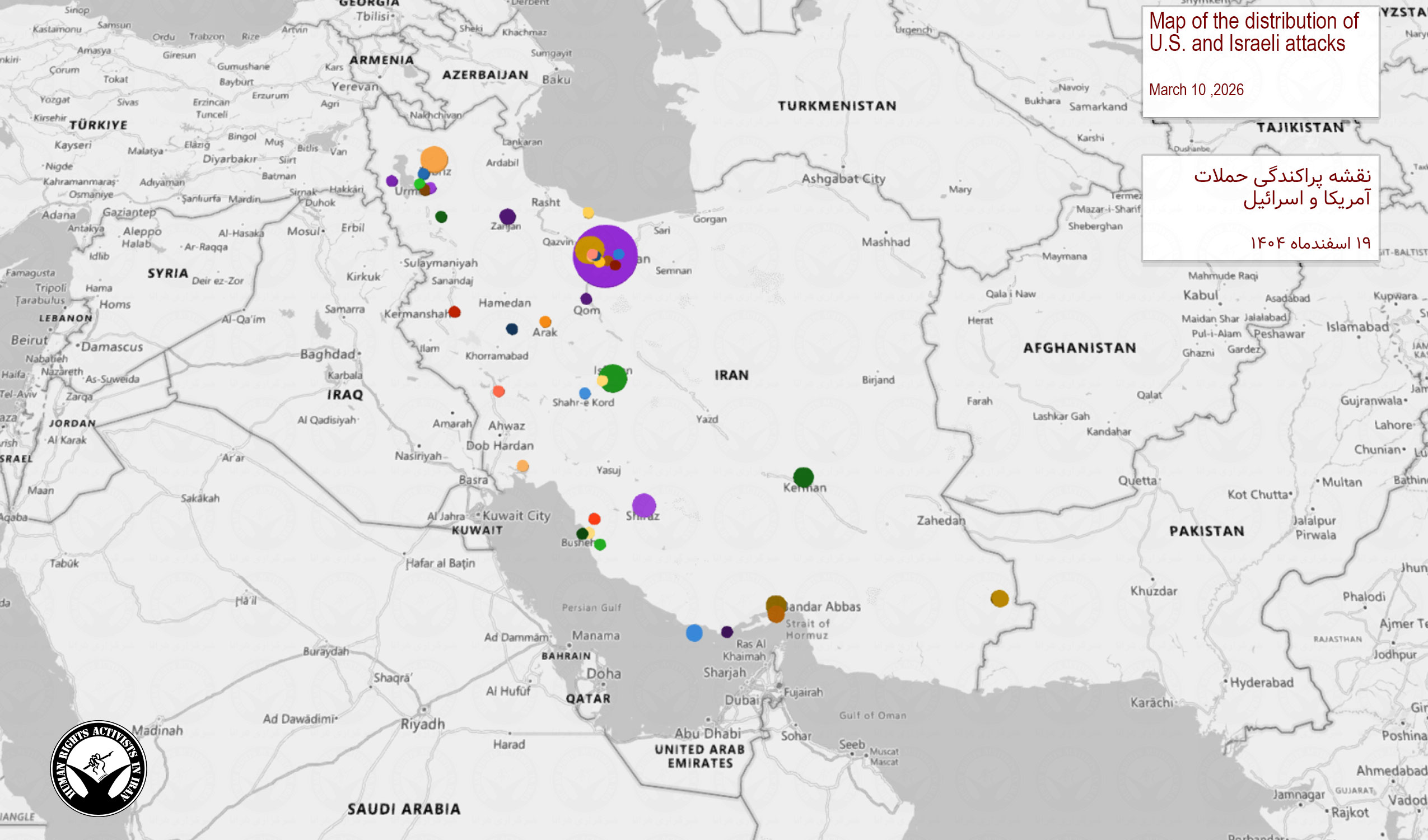 دادههای تجمیعی از آغاز درگیری ۹ اسفندماه تا زمان انتشار این گزارش – بر اساس رویدادهای ثبتشده و با در نظر گرفتن مقادیر حداقلی برای ارقامی که با «بیش از» مشخص شدهاند: