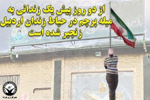 یک زندانی جدیدالورود از دو روز پیش به میله آهنی پرچم در میانه حیاط زندان مرکزی اردبیل زنجیر شده است. مسئولین این زندان به ظن اینکه این زندانی همراه خود (داخل شکم) مواد مخدر وارد کرده،