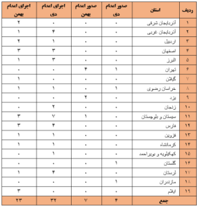 جدول مقایسه قتلهای قانونی؛ بهمن و اسفند ۱۴۰۰