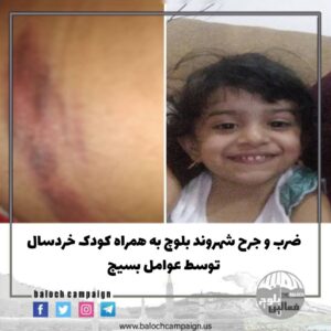 یک شهروند بلوچ که به همراه کودک خردسال خود بود توسط چند تن از عوامل بسیجی به دلیل پوشیدن لباس بلوچی مورد ضرب و جرح قرار گرفت.