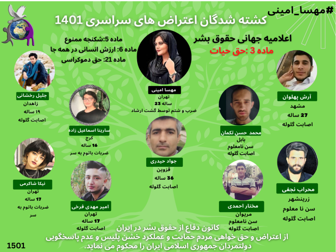 اطلاعیه 1501 با موضوع #مهسا_امینی کشته شدگان اعتراضات سراسری 1401