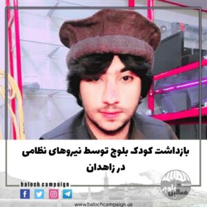 یک جوان ۱۹ ساله بلوچ توسط نیروهای نظامی در زاهدان بازداشت و به مکان نامعلومی منتقل شد.