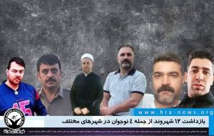 خبرگزاری هرانا – طی روزهای گذشته و امروز شنبه ۲۸ آبانماه، میثم حقی، حبیب احمدی، امین فرضی، محمد فرضی، شورش حیدری، ابراهیم شیبک، محمد خضرنژاد و چهار نوجوان به نام های آیدا لطفی، شنو احمدیان، کیژان کریمی و ستایش (نام خانوادگی نامشخص) در شهرهای تبریز، لالی، آبدانان، بوکان، گرگان و دهگلان بازداشت و به مکان نامعلومی منتقل شدند. همچنین سعید ایلخانی، دانشجوی دانشگاه آزاد شهر ملکان پس از احضار به دادستانی این شهر بازداشت شد.