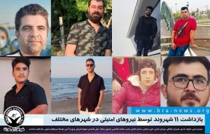 خبرگزاری هرانا – مهدی راجی، داوود بذری، شهریار واعظی، مهدی ساحی، امین ذبیحی، حسام عارفی نسب، محمد قاسمی، حسین رخشا، علی احمدی، سونیا شریفی و پوریا آرین در شهرهای بندرانزلی، سلمان شهر، رشت، آبدانان و بهبهان بازداشت شدند.