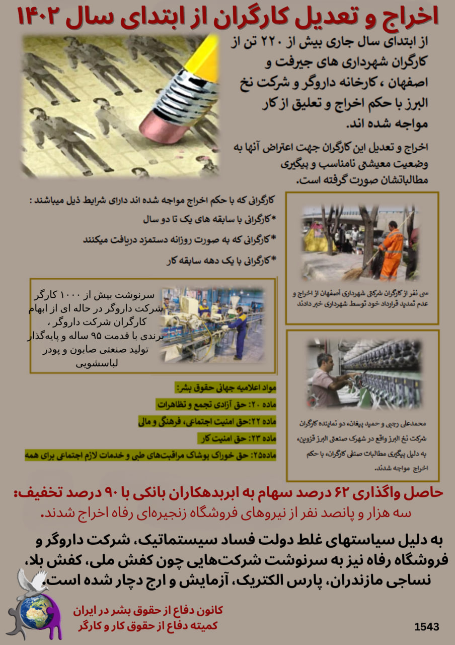اطلاعیه ۱۵۴۳ کمیته دفاع از حقوق کار و کارگر با موضوع اخراج و تعدیل کارگران در سال ۱۴۰۲