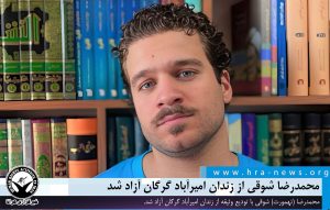 خبرگزاری هرانا – روز چهارشنبه دهم آبان ماه، محمدرضا (تهمورث) شوقی، با تودیع وثیقه از زندان امیرآباد گرگان آزاد شد.