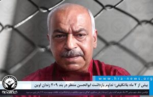 خبرگزاری هرانا – ابوالحسن منتظر، متهم سیاسی ۶۴ ساله علیرغم گذشت بیش از دو ماه از زمان دستگیری، کماکان به صورت بلاتکلیف در بازداشتگاه وزارت اطلاعات موسوم به بند ۲۰۹ زندان اوین بسر میبرد.
